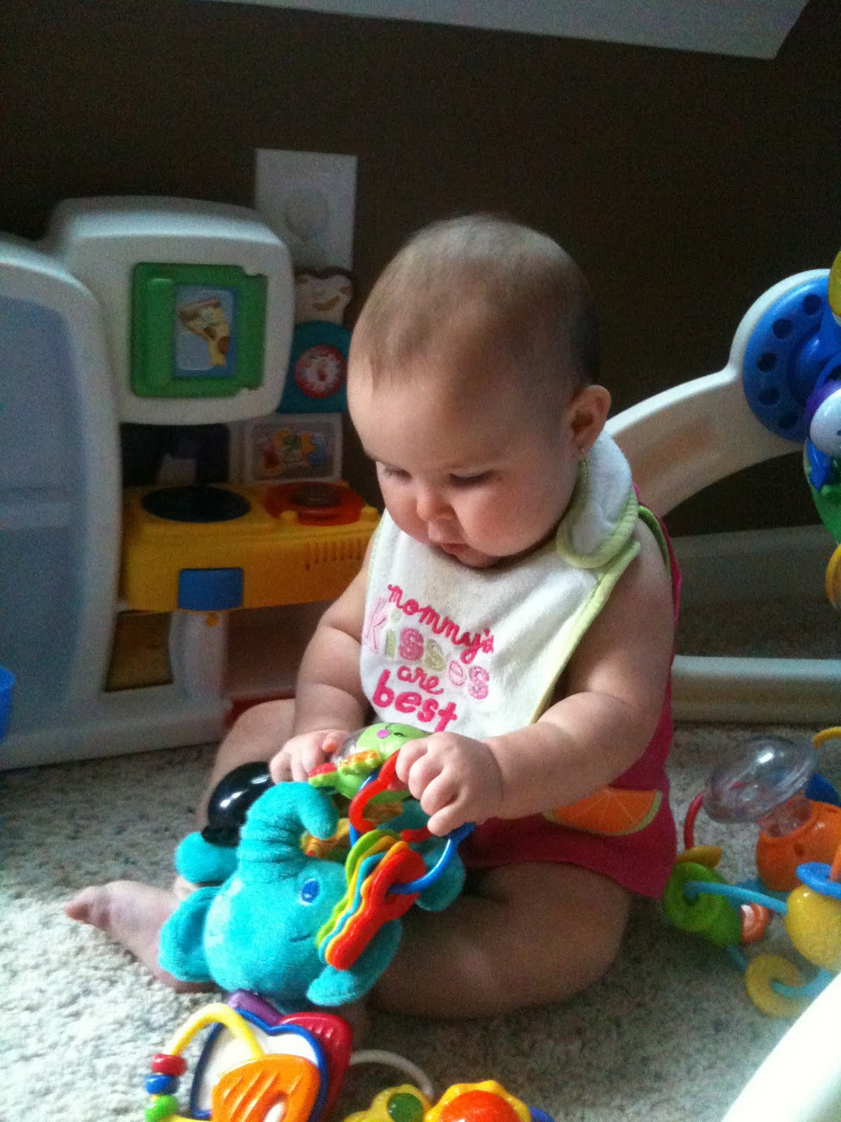 *Maria takes a morning nap around 9 for about an hour. She naps for 2-3 hours around 1130, and takes another cat nap in the evening after her 5pm bottle! She is down for the night at 830 and sleeps until 730/8 in the morning...BEAUTIFUL!